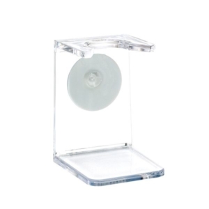Supporto per pennello in plastica trasparente. Mantiene il pennello da barba a ‘testa in giù’ (con il ciuffo rivolto verso il basso), in modo da non far stagnare l’acqua presente nel pennello alla base del ciuffo. Fondamentale per il giusto mantenimento del pennello. Diametro 2,4 centimetri.